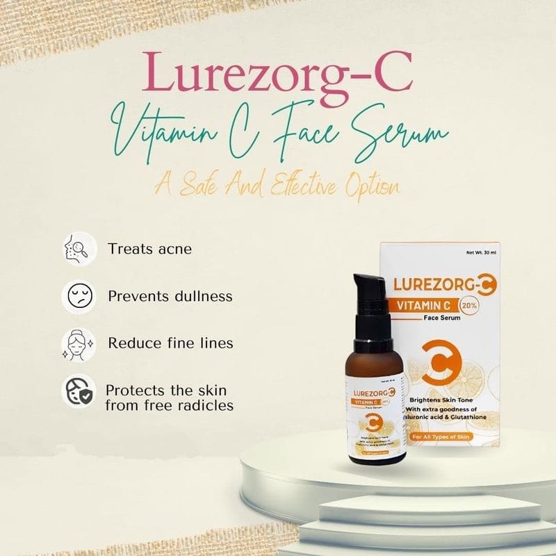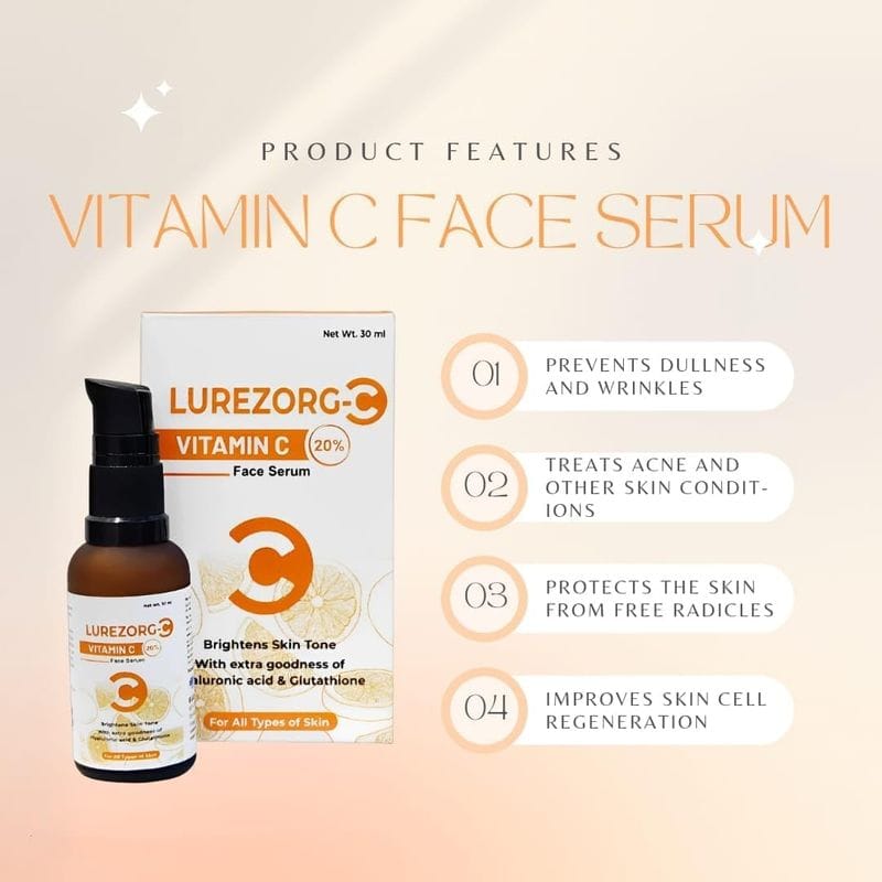 Transform your skincare routine with Lurezorg Vitamin C 20% Face Serum, a powerful brightening and hydrating formula designed to improve dull, uneven-looking skin. Enriched with potent Vitamin C, Hyaluronic Acid, and Glutathione, this lightweight serum helps visibly reduce dark spots, support collagen production, and deeply hydrate the skin for a smoother, radiant complexion.